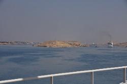 | Soon after the bridge we arrive at Port Said. Note the cattle and wall. |