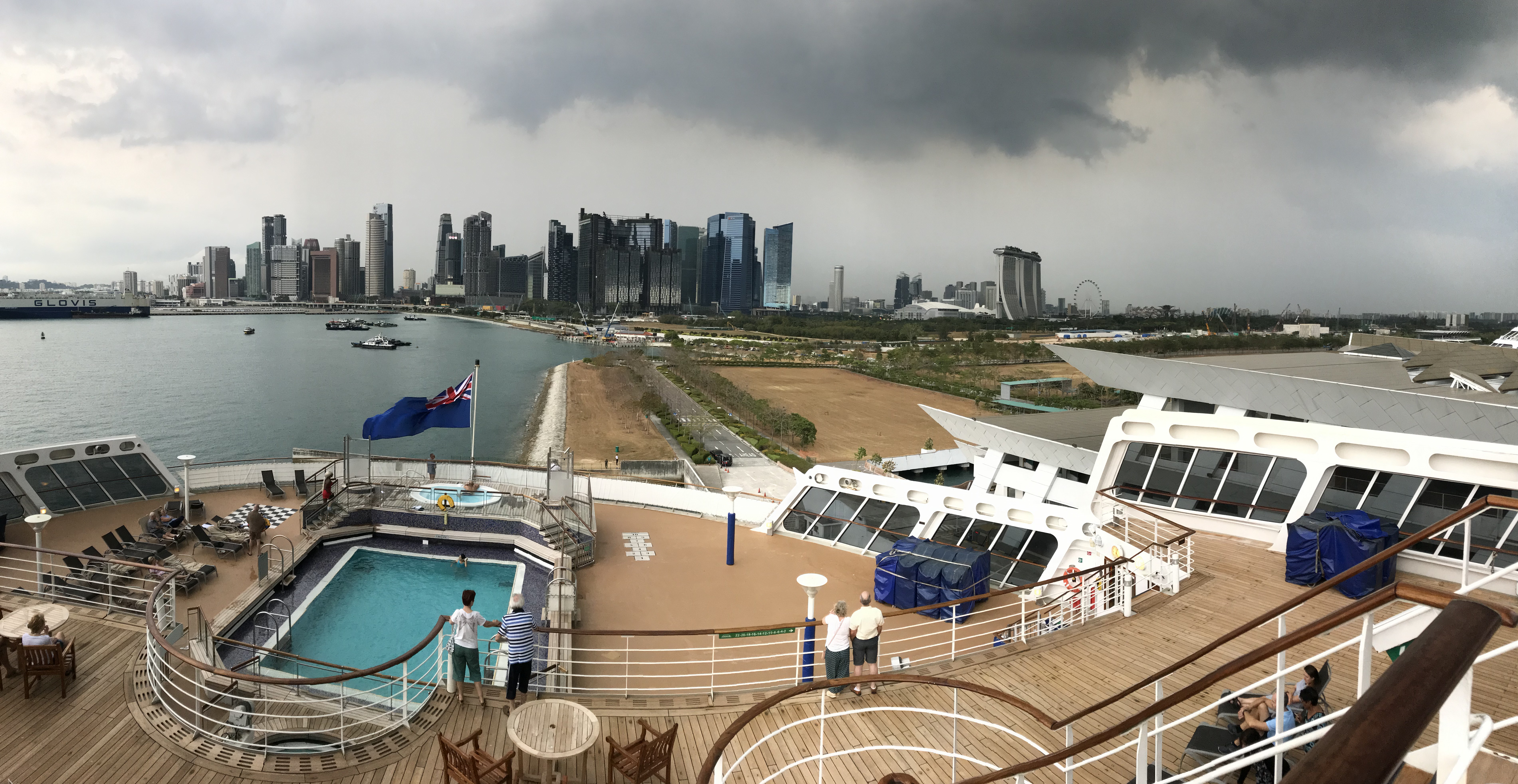 | Singapore from the Queen Mary 2 just before sailing out of the harbor. |