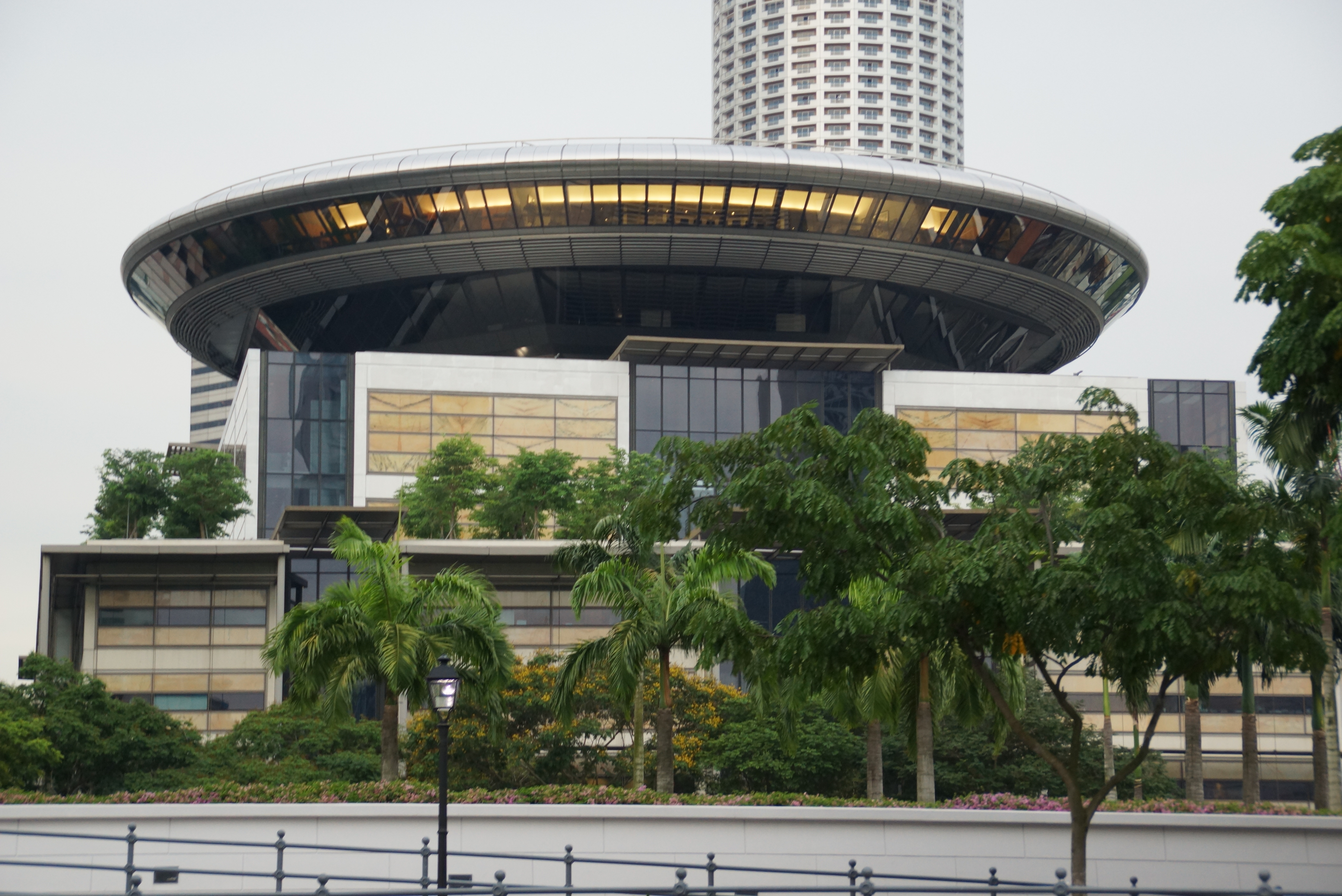 | Singapore has buildings of unusual architecture. |