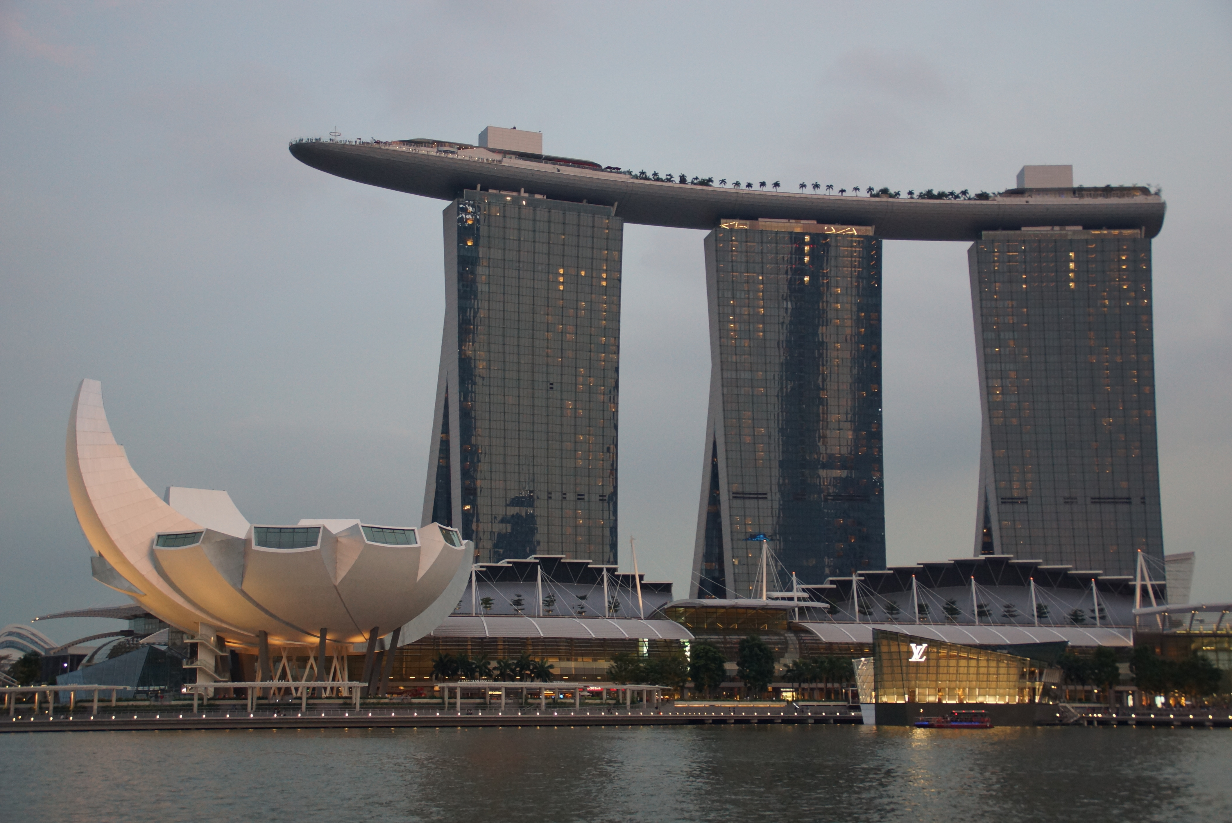 | The Marina Sands Casino from the river walk. |