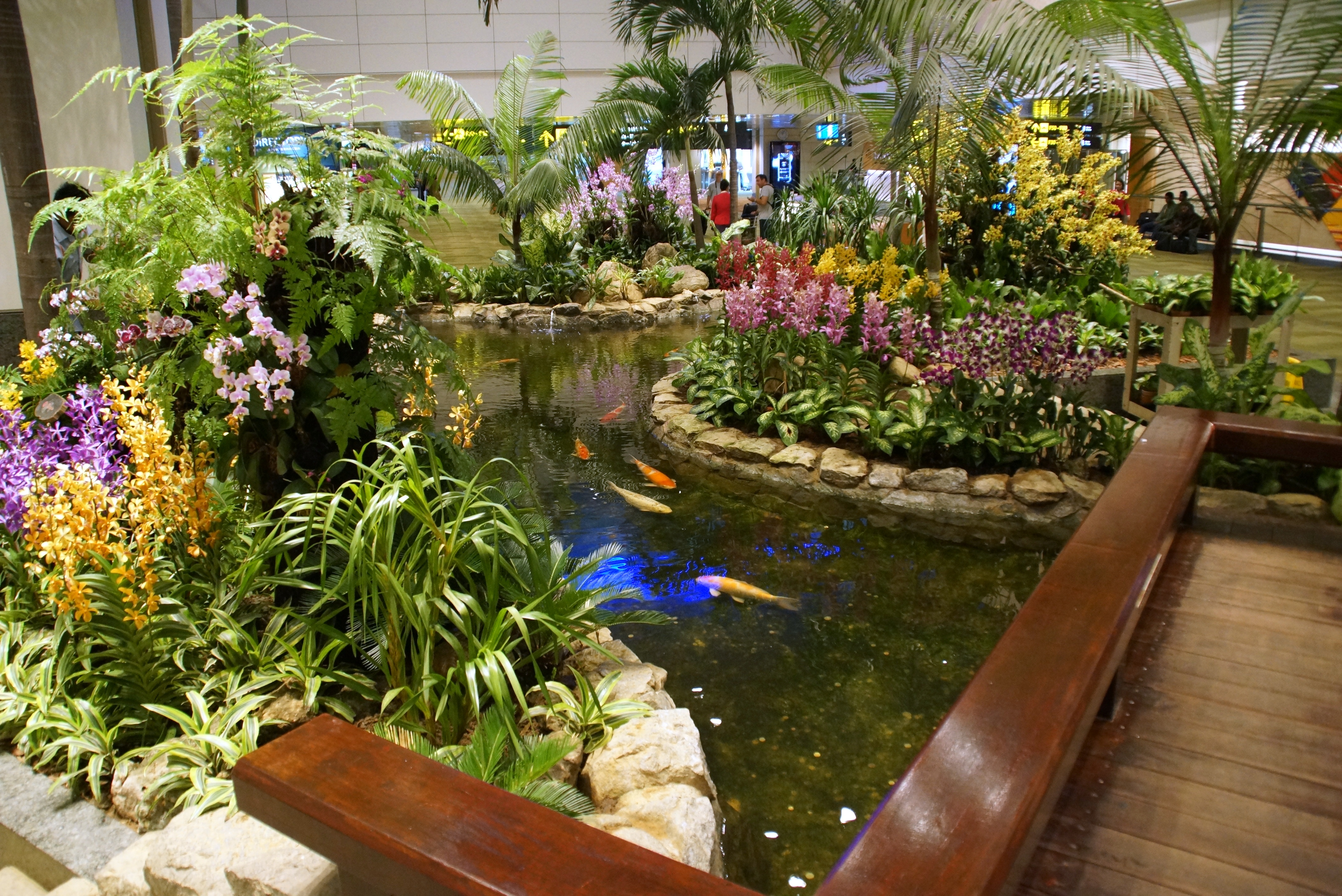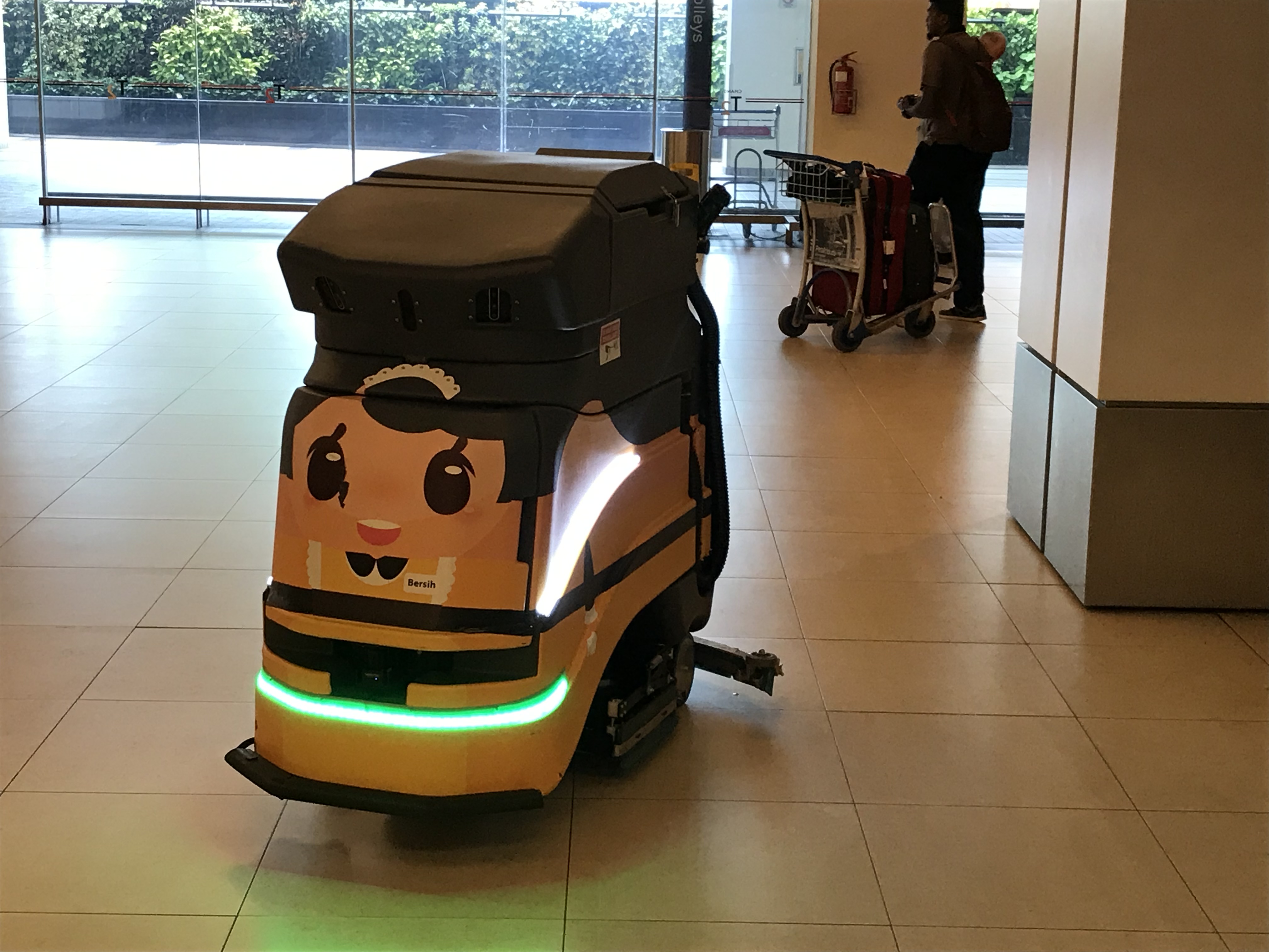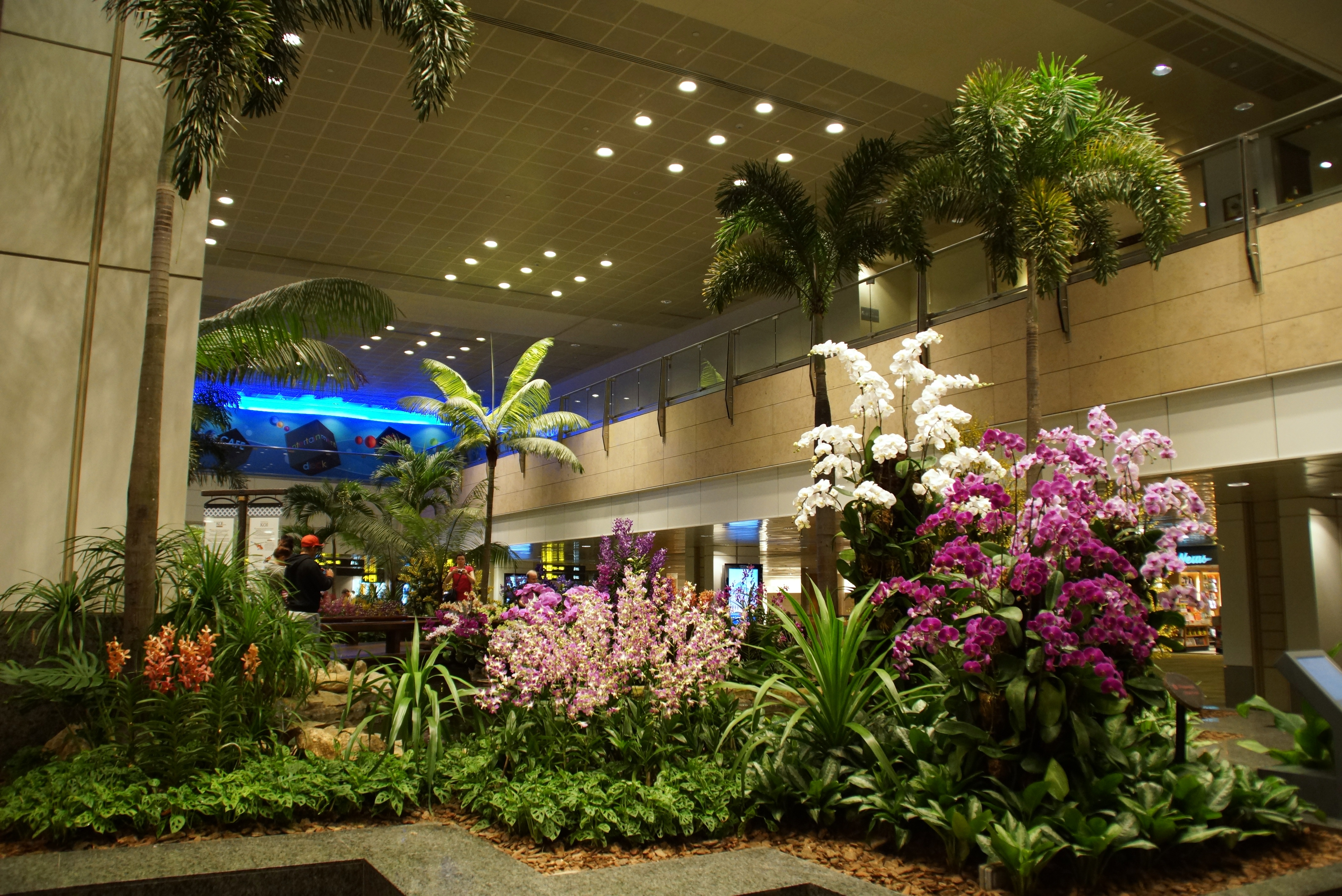 | The ulta modern airport features gardens and even has robots cleaning the floor. |