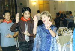 | Joanne dancing the Thai way with Tarn and Kit. |