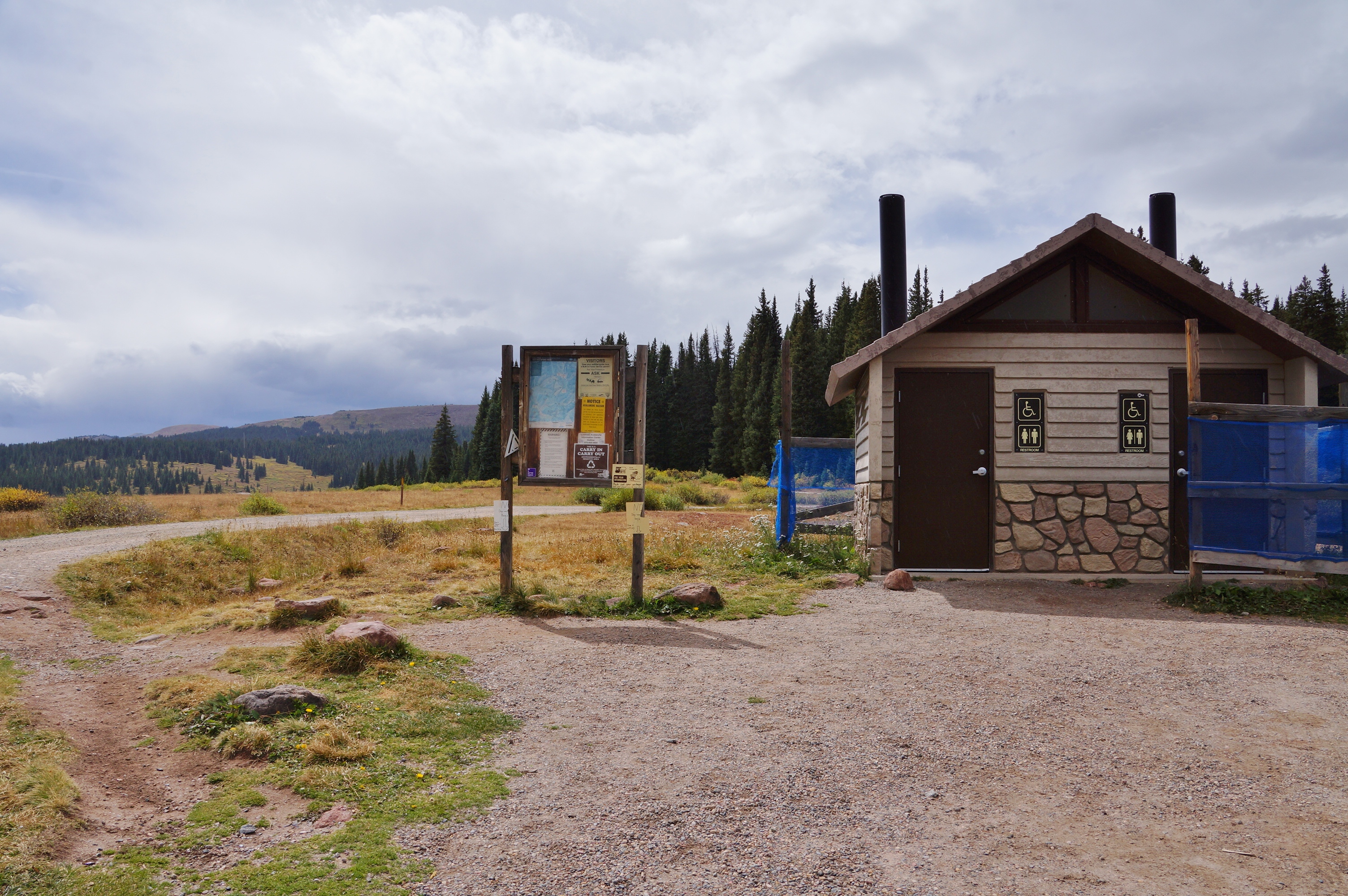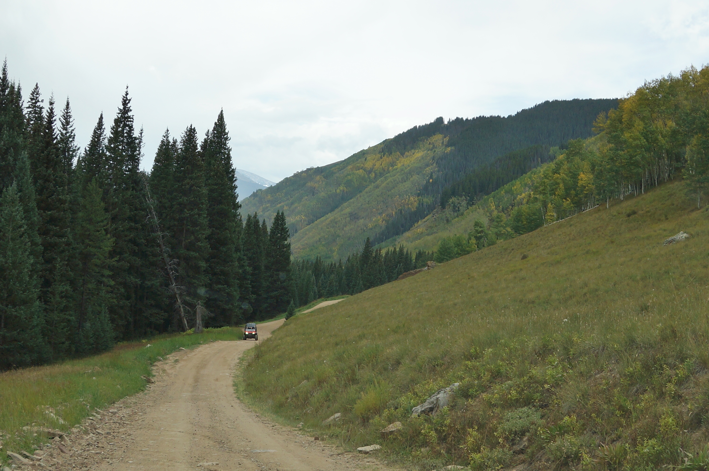 | We then go south on the gravel road to Shrine Pass Trailhead. |
