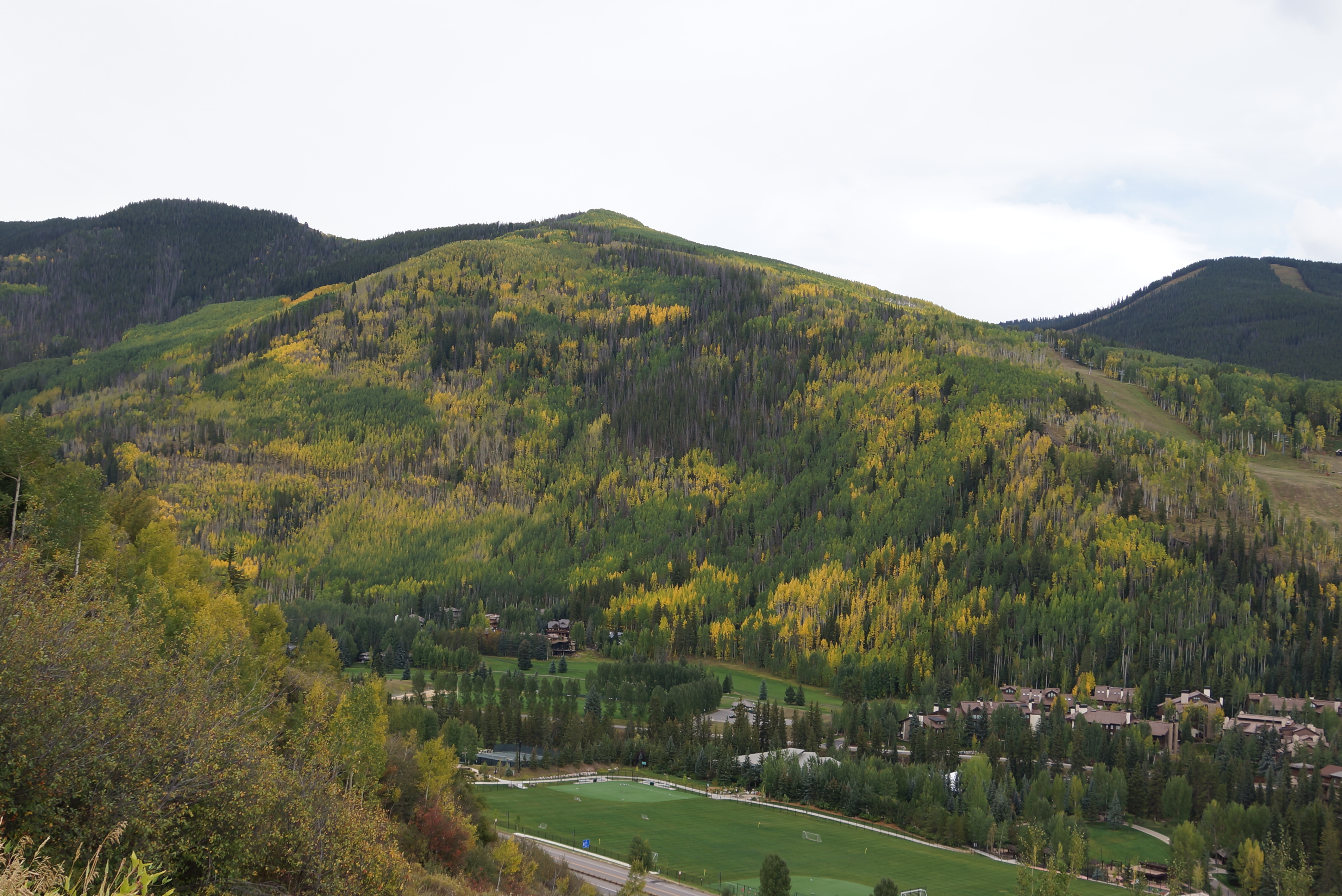 | Soon we are overlooking Vail with the fall colors just starting. The fall colors seem to peak the last week in September in Vail. |