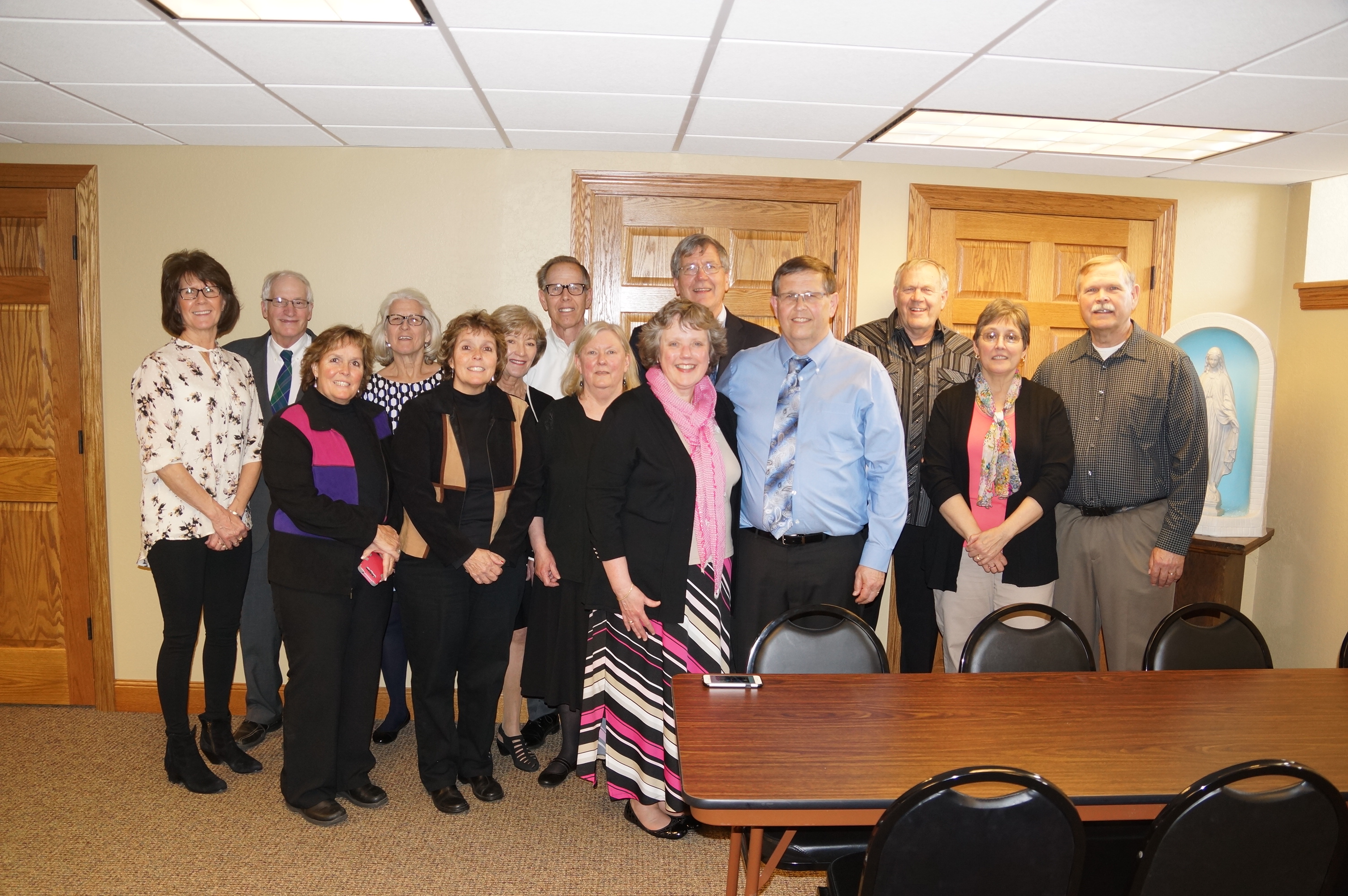 | From the left: Lori, Thomas, Marilyn, Carol, Mary, Joanne, Craig, Susan, Trudy, Douglas, Tom, Loren, Colleen and Gerald in 2017 at Norbert's funeral. |