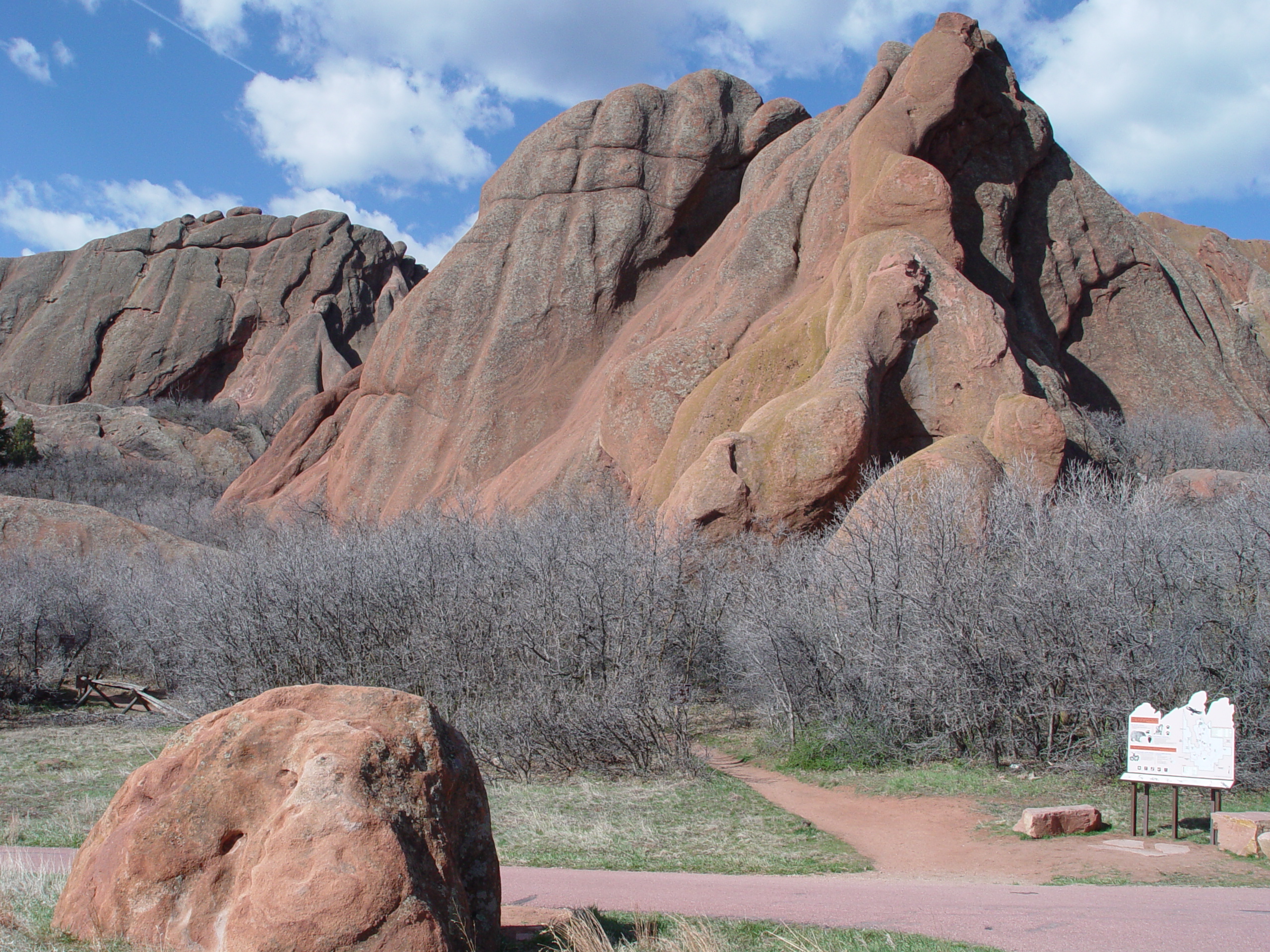 | Carpenter Peak is located in Roxborough State Park. The hike was 6.7 miles roundtrip from 6202 feet to 7198 feet for a vertical rise of 996 feet. |