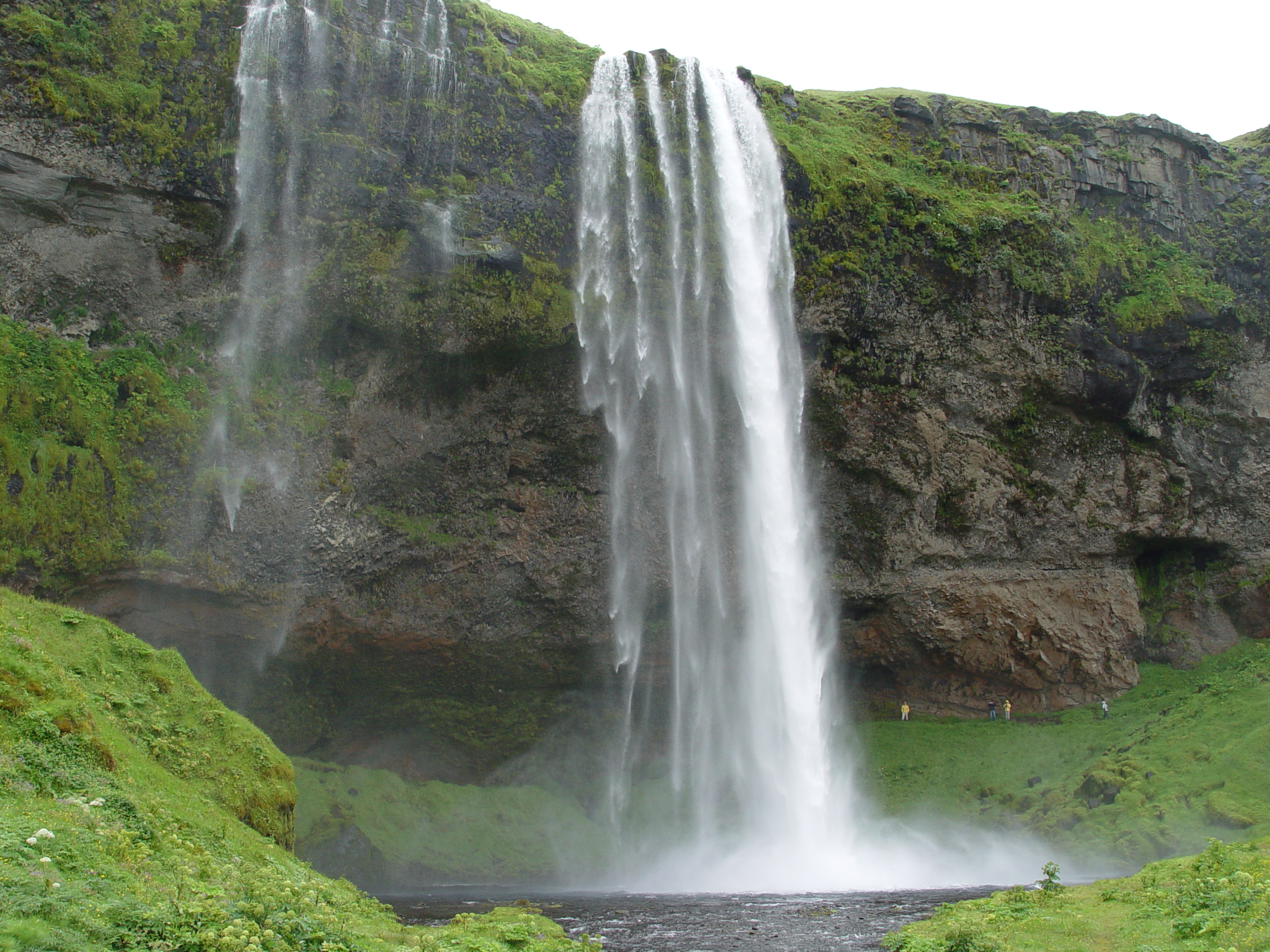 Un-named waterfall in Alaska's Prince Edward Sound-note Seagulls |